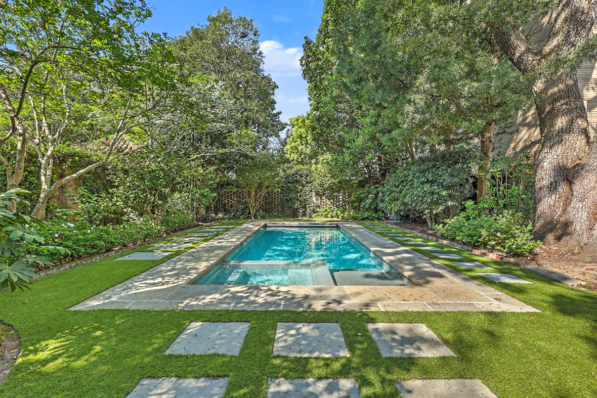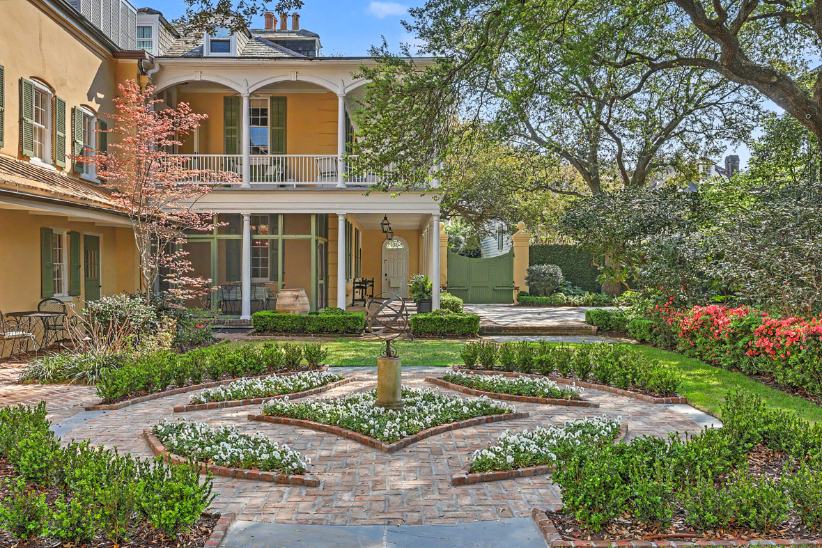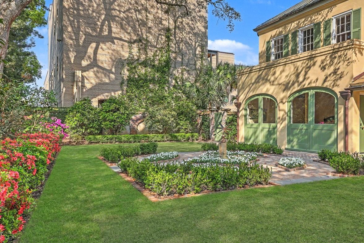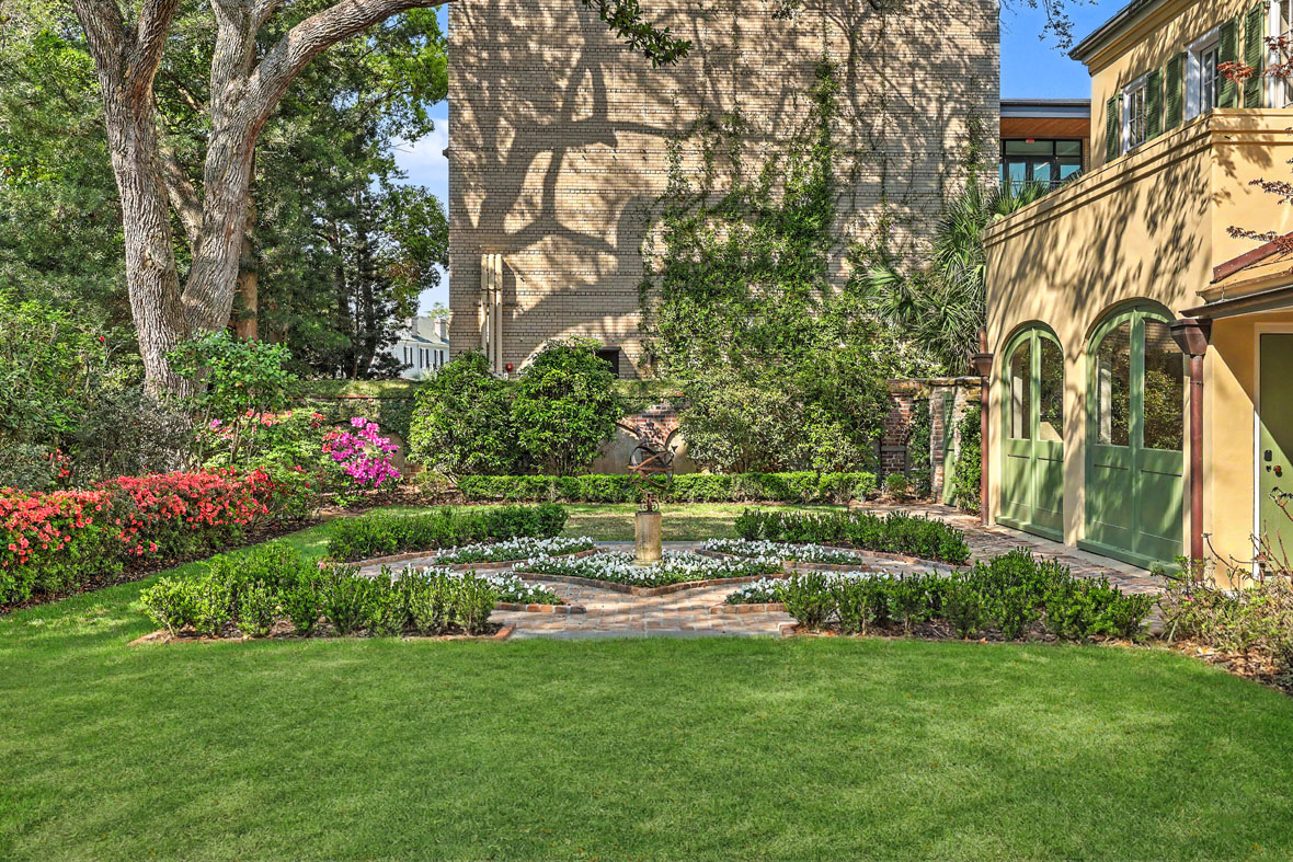 A swimming pool and spa with a heater, chiller, and retractable cover was installed. The hardscape and plantings were updated in 2019-20 by Sheila Wertimer. Most recently, Glen Gardner reestablished the parterre garden surrounding an armillary sphere—a landscape element that predates the Loutrel Briggs layout. Altogether, the gardens of 59 Church Street have been curated by a virtual “Who’s Who” of Charleston landscape design.