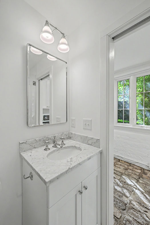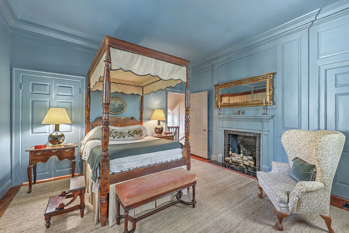 Despite its 1735 origins, the house has been thoughtfully adapted for modern living. Discreet updates include an elevator, modern alarm system, and keyless entry integrated along antique brass hardware, ensuring comfort and security while maintaining historic integrity. A powder room off the stair hall and other carefully placed conveniences support everyday living without compromising the home’s architectural authenticity.