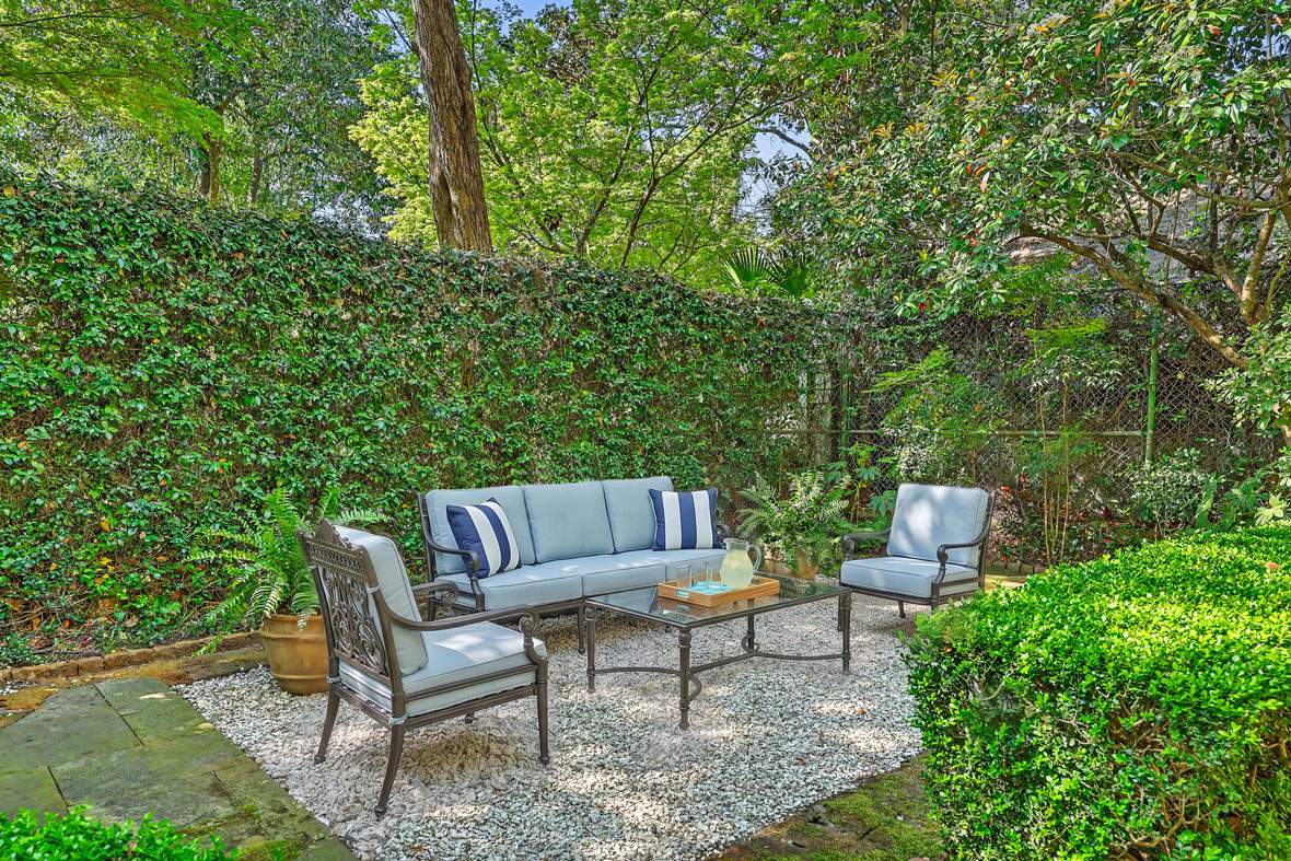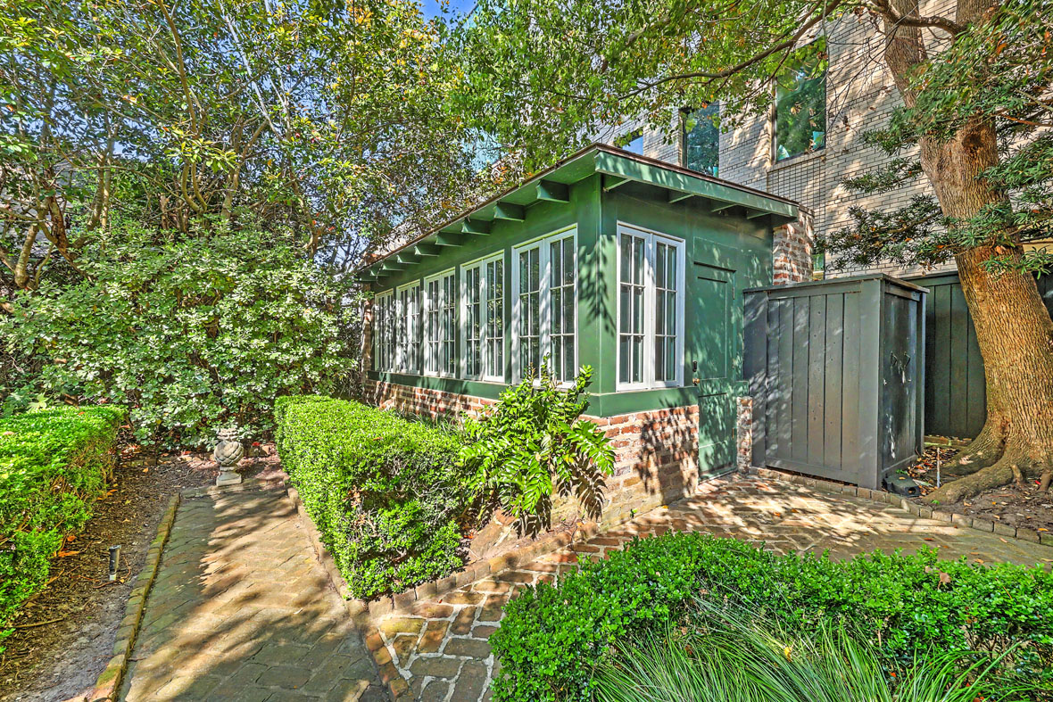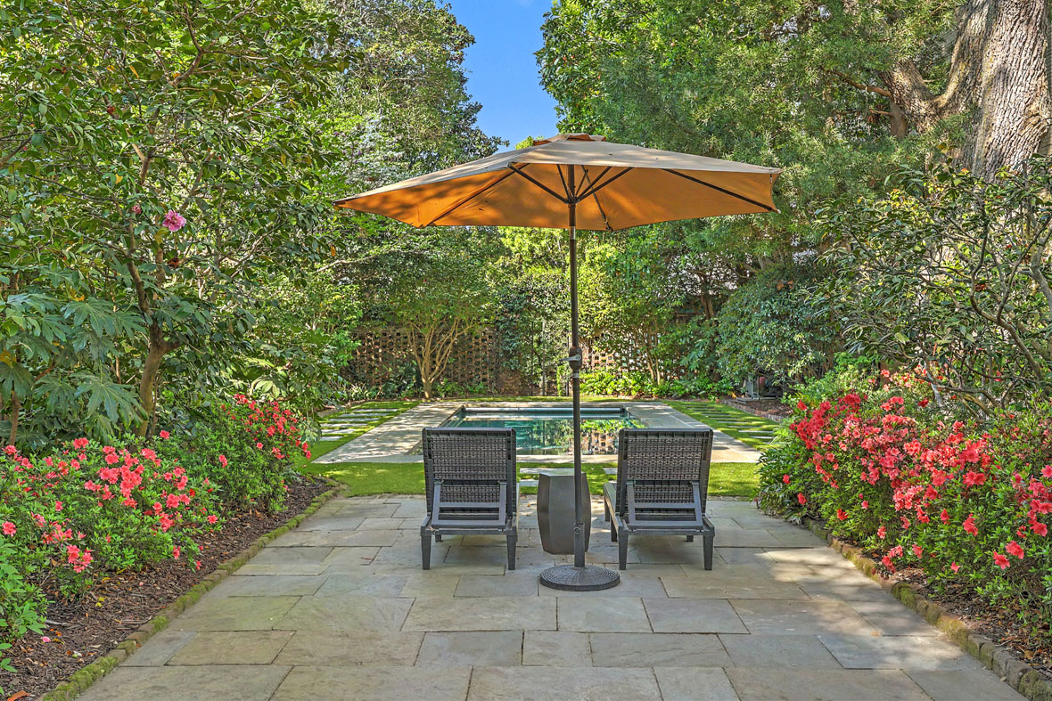 One of the more recent additions to the grounds is a heated and cooled swimming pool and spa with a retractable cover—the perfect place to spend a Lowcountry summer day. Through an iron gate beyond the pool lies a hidden terraced garden and garden house (not included in the square footage) with kitchenette and full bath. It would be an ideal pool house, office, craft studio, another guest suite, or simply a quiet retreat.