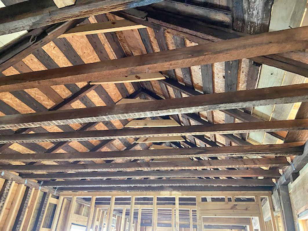 Inside has been stripped to the studs and framed for 3 bedrooms and 3 full baths. The thoughtfully-designed floor plan is centered around preserved historic architectural elements, including 4 original fireplaces and open-beamed ceilings.
